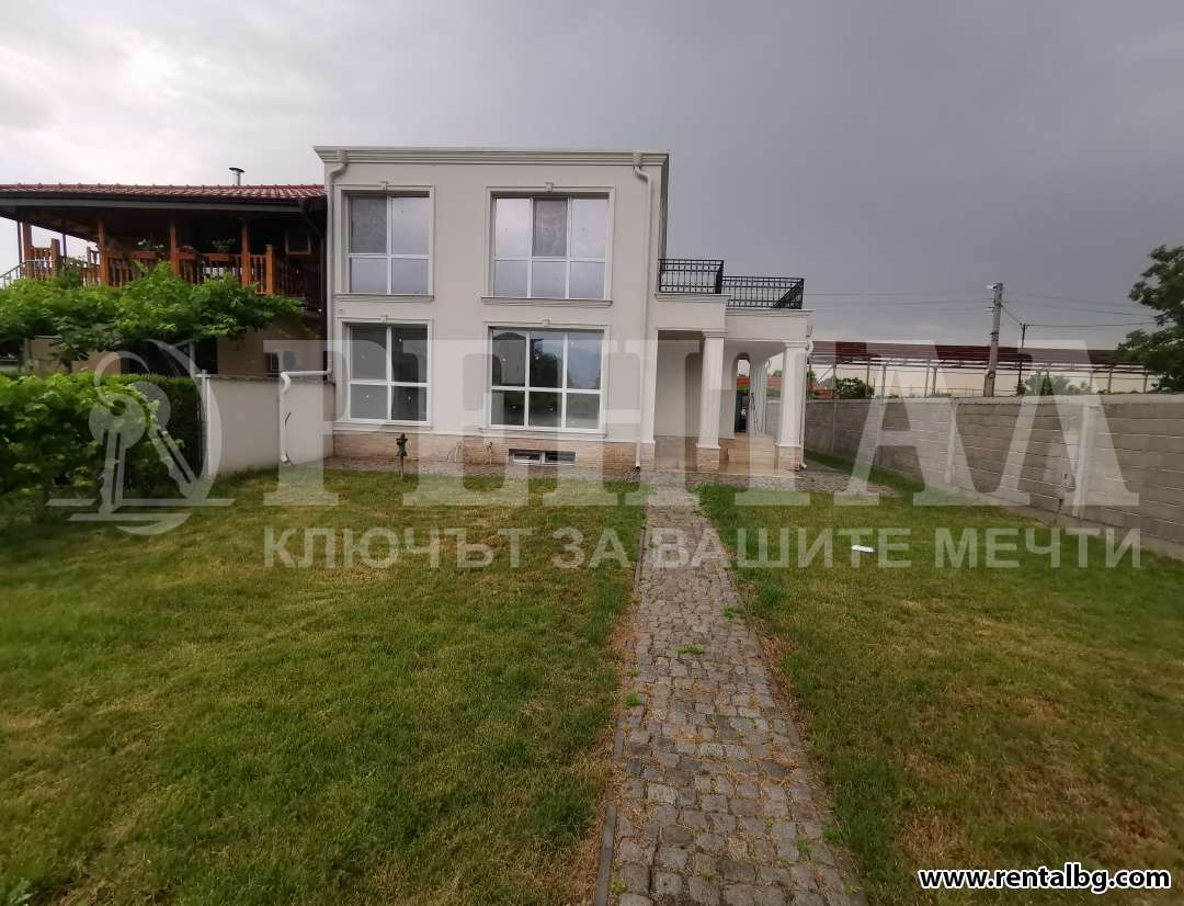 ОФЕРТА 201540 Предлагаме- Къща в с.Ягодово, дворно място от 800 кв.м. с модерна и функционална къща на два етажа (общо 250 кв.м.) , на околовръстното шосе, на 15 мин. с кола от центъра на Пловдив, асмалъци с различни сортове грозде -десертно и за вино, овощни дървета - сливи,смокини,дюли,ябълка и т.н. -С помпа за вода -голям преден двор ,с възможност за построяване на два гаража - стопански постройки-използвани преди 10г.за -къщата е след основен ремонт-с външна изолация,мазилка, маркова многокамерна дограма,изводи за климатици,предверие с гардеробна, вътрешна стълба за втория етаж. -1 етаж - спалня,отворено помещение със зони за хранене и хол, санитарен възел, гардеробна -2етаж -три помещения с три бани и тоалетни към тях,две тераси -източна и северна.