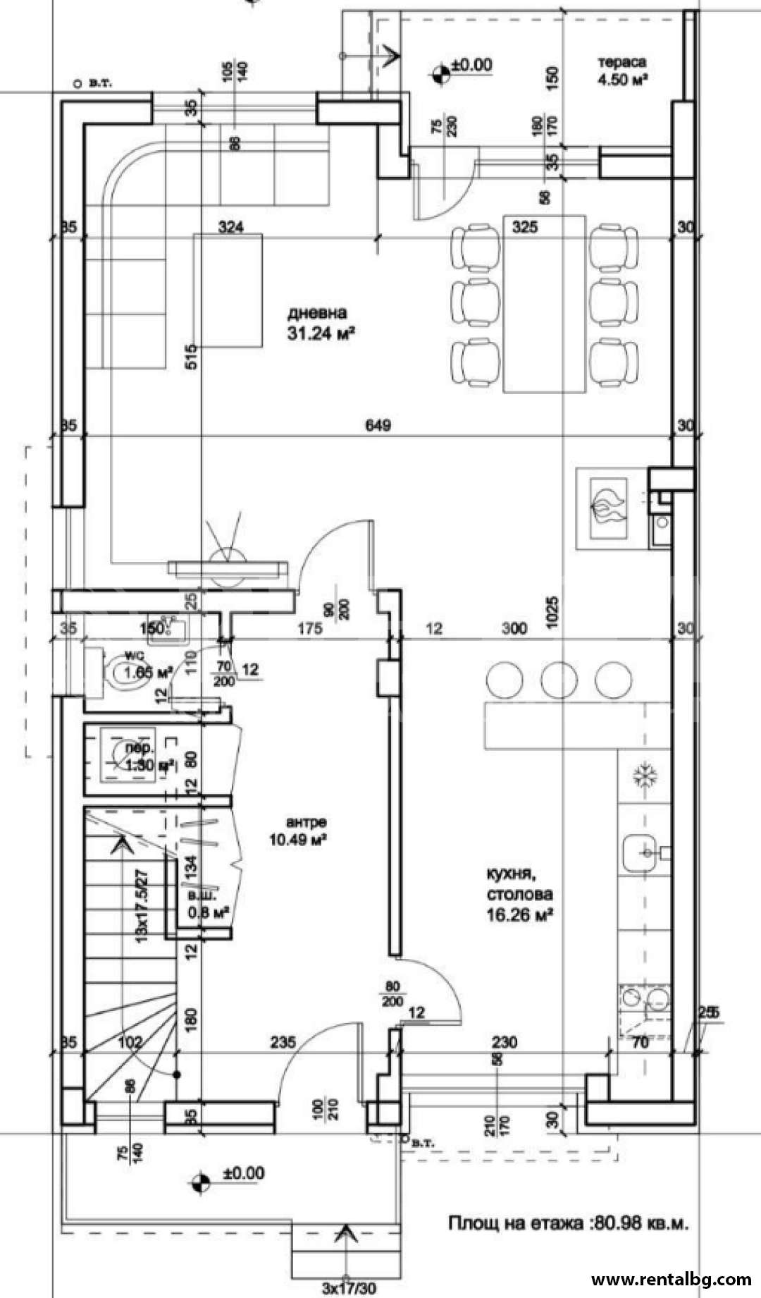 ет.1-85 кв.м. голям и просторен хол с кухненски бокс ,входно антре , тоалетна и веранда.Вторият етаж 92кв.м. се състои от ,голяма родителска спалня с тераса ,голяма баня , тоалетна и голямо гардеробно помещение , има и още две детски спални .