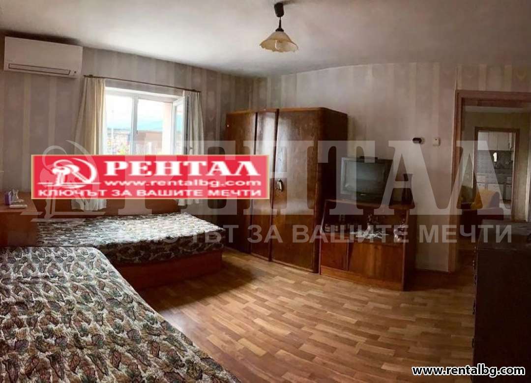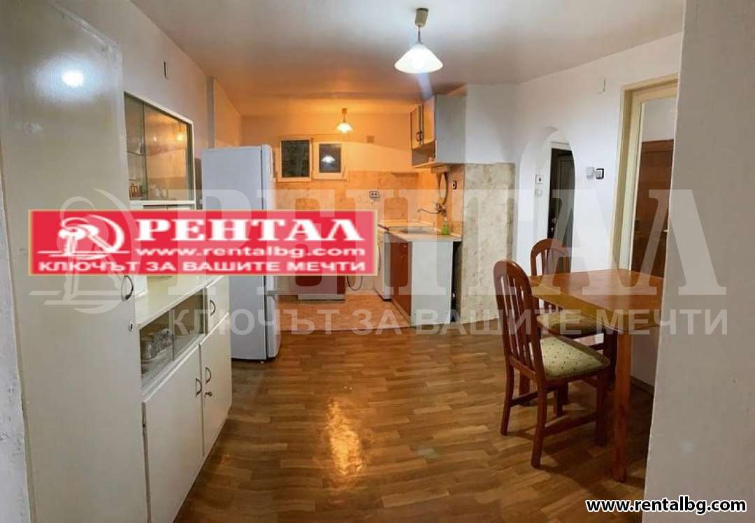 Предлагаме под наем етаж от къща с идеална част от двора. Етажът е напълно оборудван и пригоден за живеене / хладилник, смарт ТВ Sony, 2 обикновени тв, фризер, фурна, микровълнова печка, пералня, посуда - чаши, чинии, всякакви съдове/. Състои се от две спални, хол, кухня, тоалетна към едната спалня, както и обща баня с тоалетна. С възможност за паркиране на улицата пред къщата.