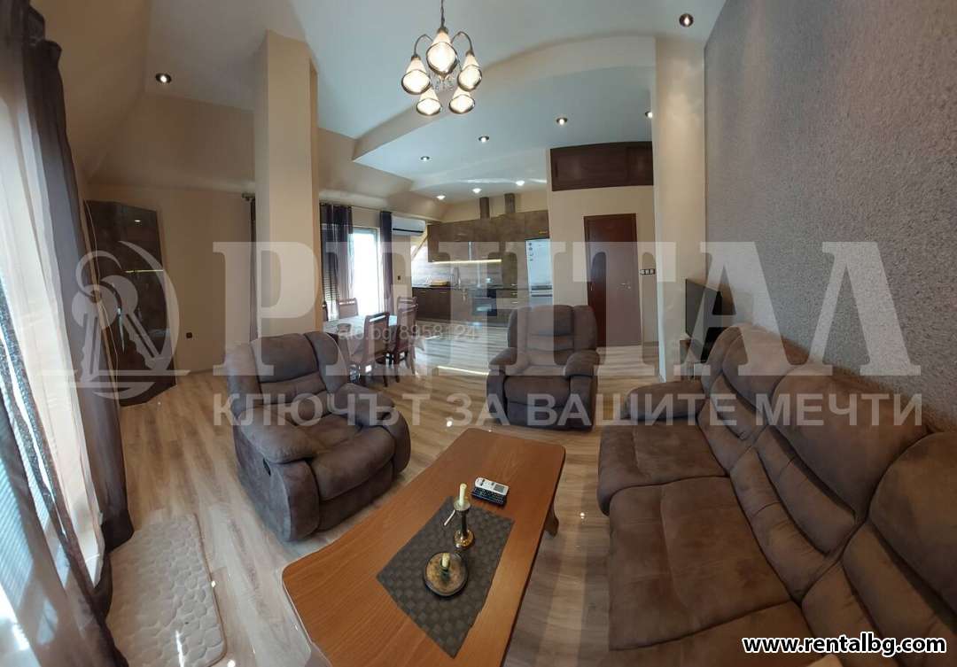 Нов апартамент. Луксозно обзаведен. Специална подова настилка, шкафове от висококачествен материал, климатик, 40’ ТВ, нова и скъпа холова гарнитура, кресла с функция ’релакс’, голям хладилник с фрийзер от висок клас, вградена печка с керамични котлони, пералня, бойлер и т.н.Контролиран достъп на входа, асансьора и всеки етаж + видеонаблюдение на вход, коридор и всеки етаж!