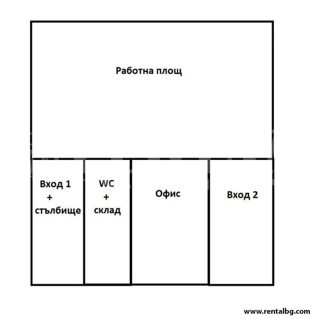 Отдава се под наем първи преземен етаж от сграда, който може да се използва за Производствено помещение, Склад и друго с площ 192 кв.м. Състои се от главно голямо помещение, офис, собствен склад и санитарен възел. Подходящо за складиране или производствена дейност. Наемна цена 800лв.