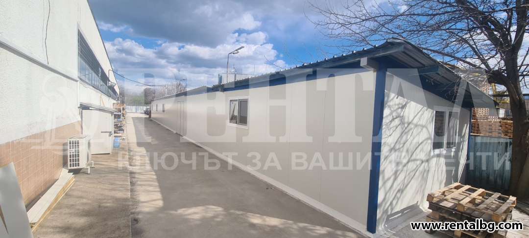 Узаконено хале от термопанели с площ около 300 кв.м., нова постройка с офис част от 45 кв.м. с баня и тоалетна, още една постройка с термопанели 300 кв.м.