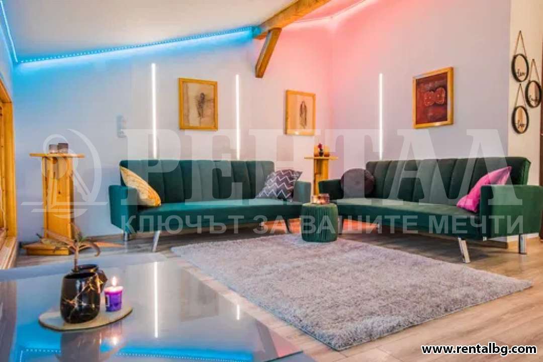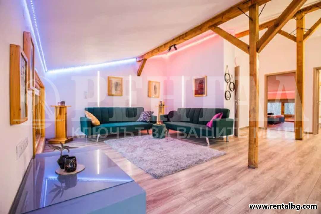 Напълно обзаведен е с всички електроуреди, вградена фурна, вграден аспиратор, вграден индукционен котлон, пералня, съдомиялна, хладилник, климатици, кабелна и интернет. Апартаментът се състои от 4 спални, 2 просторни хола, кухня и антре, 2 бани с тоалетна и гардеробна. Подовите настилки са теракот и дюшеме. Вратите и прозорците са от естествен материал, дърво, което придава много уют и топлина, а същевременно е и екологично чисто. Едно парко място Къщата се намира на много тихо и спокойно място на