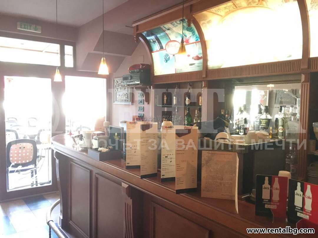 Оферта 170927 Продаваме оборудвано кафе аперитив на централен булевард - работещо.Целият обект е 70 кв.м.,седящи места вътре-30 места,отвън външна градина с разрешително - 30 места,обзаведено, лукс,кухня - оборудвана,склад с втори вход,всички нужни документи и разрешителни,готово за работа.Може да се ползва като малък кокетен ресторант с тематична кухня.Продава се като бизнес инвестиция с много добра локация.