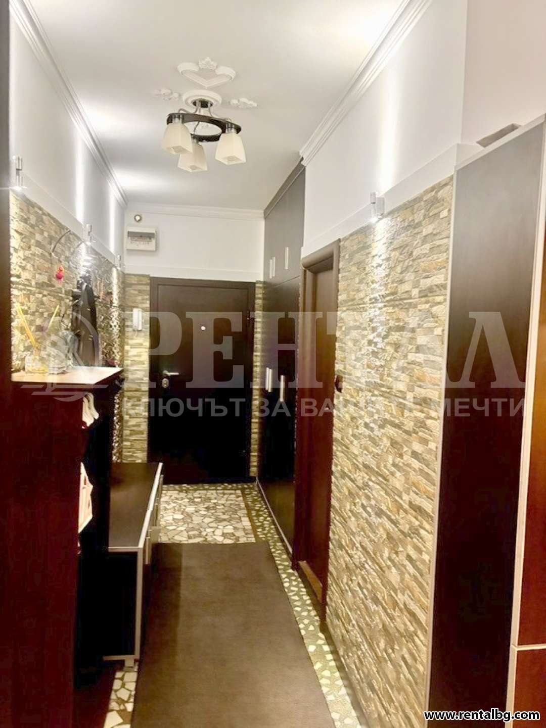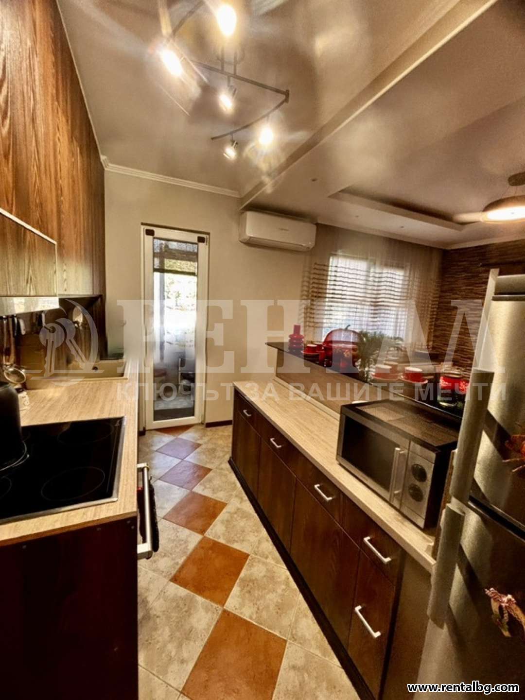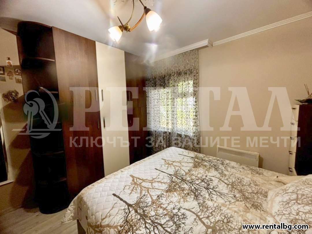 Апартаментът (96 кв.м) предлага перфектен баланс между комфорт, стил и удобство. Състои се от модерно обзаведен хол с напълно оборудван кухненски бокс и обширна трапезария, две самостоятелни спални, тоалетна, перално помещение и баня, две остъклени тераси и входно антре. Оборудван е с всички необходими електроуреди: пералня, съдомиялна, сушилня, хладилник, печка, микровълнова, стъклокерамичен котлон, електрическа кана, бойлер, климатик, телевизор, интернет и цифрова телевизия. Има блиндирана входна врата. Намира се в тих район, на пешеходно разстояние (около 3 минути) до Lidl, зеленчуков пазар, търговски център, парк, аптека, автобусна спирка, бензиностанция, училище и детска градина. Изложение север/юг.