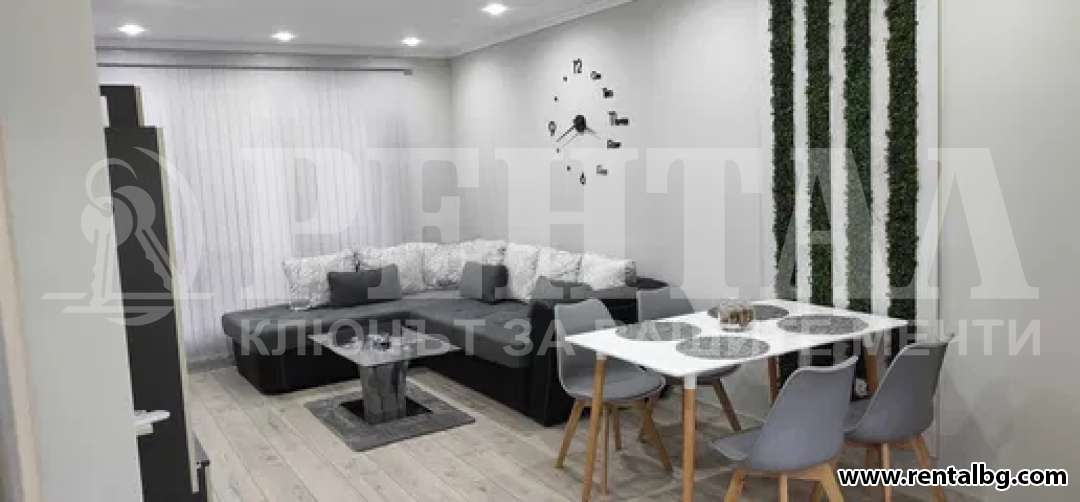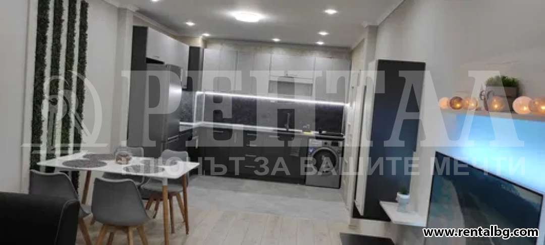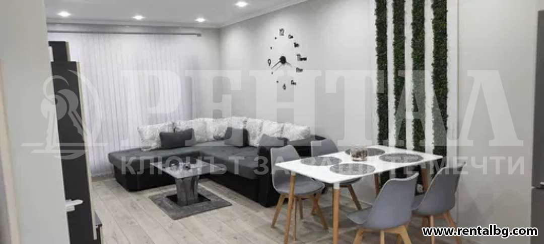 Предлагаме под наем двустаен апартамент, състоящ се от голям хол с широк кухненски бокс,спалня,баня и тоалетна,коридор,просторна тераса с красива гледка към вътрешния двор на комплекса и голямо мазе. Жилището е напълно обзаведено с всички необходими чисто нови електроуреди от висок клас. (Пералня, Аспиратор, Фурна, котлони, хладилник, Smart Android Телевизор,Хипер инверторни климатици от най висок клас,120л. Бойлер, Трапезна маса със столове, Голяма ъглова холна двойно разтегателна гарнитура, Холна секция, Чисто нов матрак с повдигащ механизъм в комплект със спален комплект, Голям шкаф за обувки и голямо портманто. Има окачен таван в целия апартамент с изолационна вата. В наемната цена не е включена такса поддръжка на комплекса. Към апартамента има голямо почти закрито от всички страни подземно паркомясто. ОФЕРТА 262531