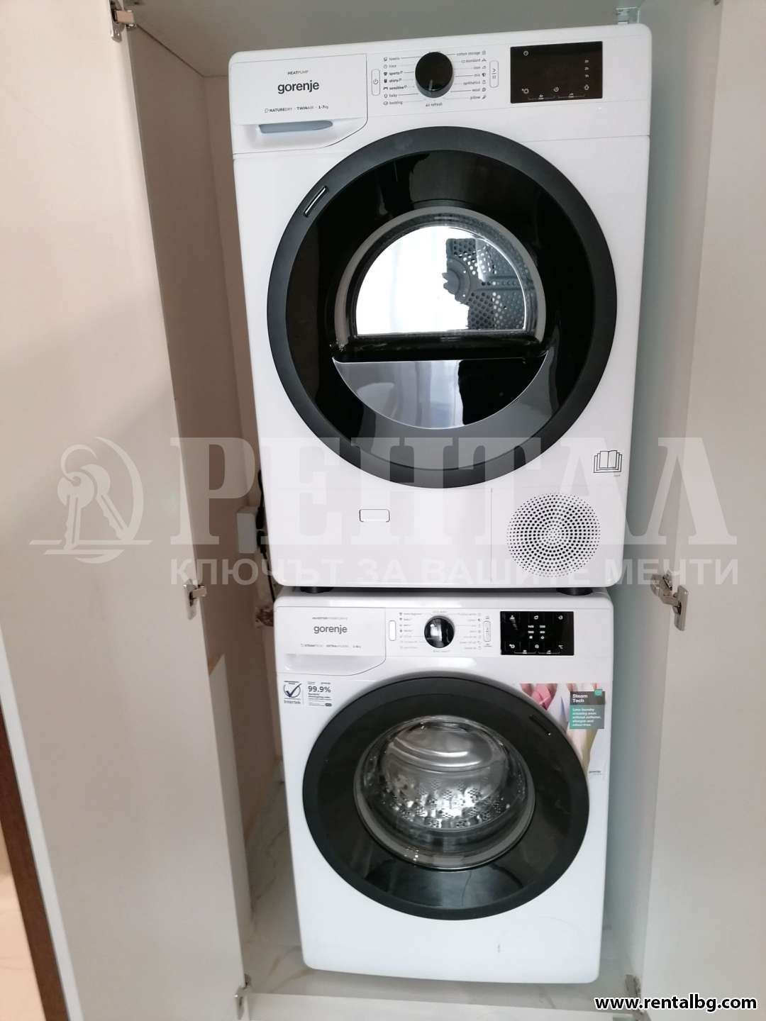 Апартаментът разполага с всички необходими електроуреди - сушилня, съдомиялна, пералня, фурна, котлони, аспиратор, хладилник, два климатика и два плазмени телевизора.