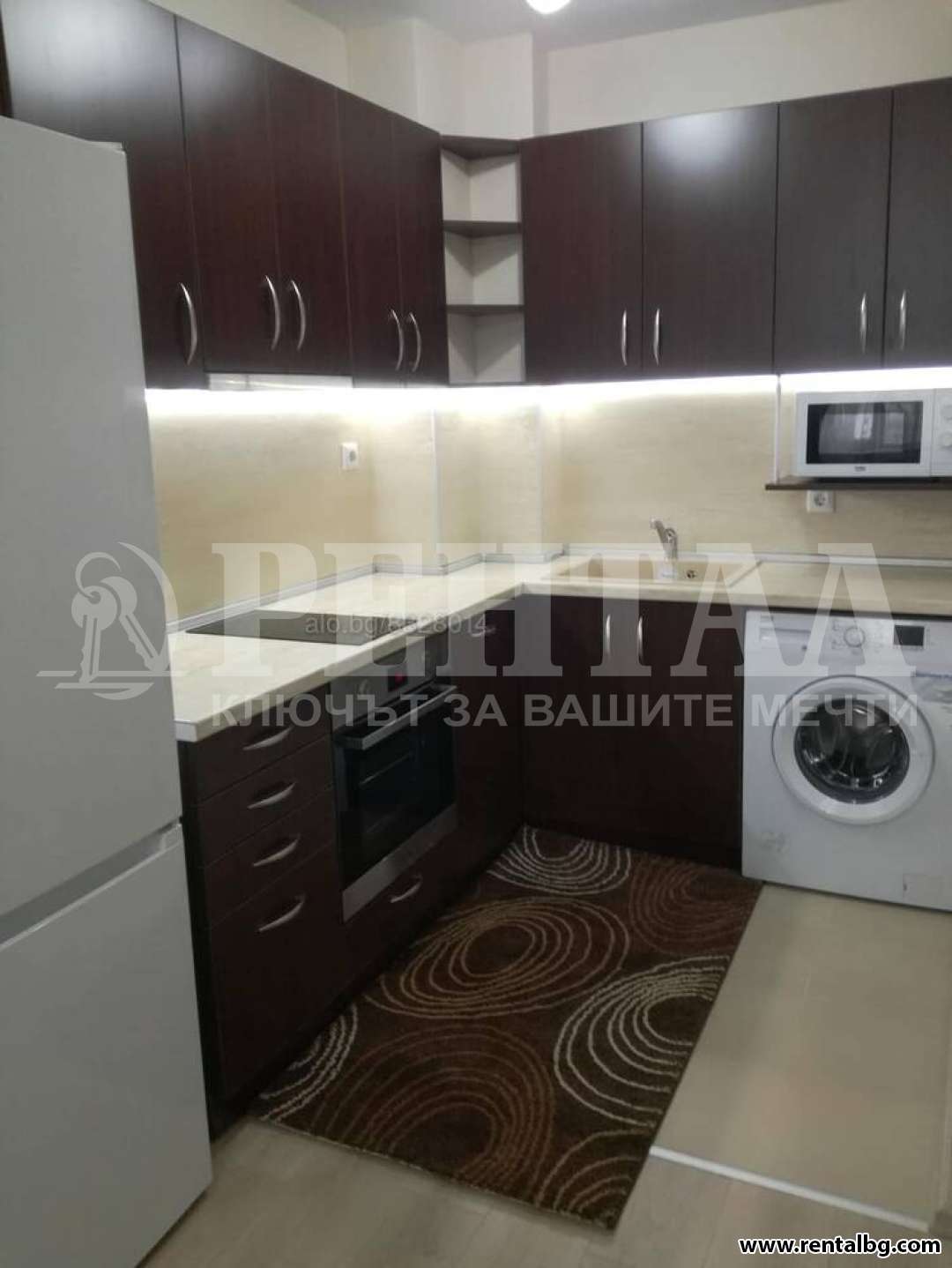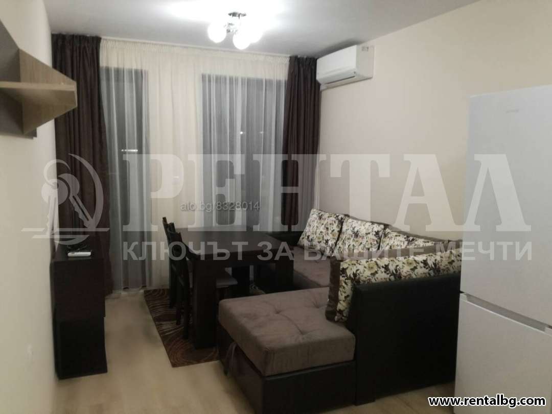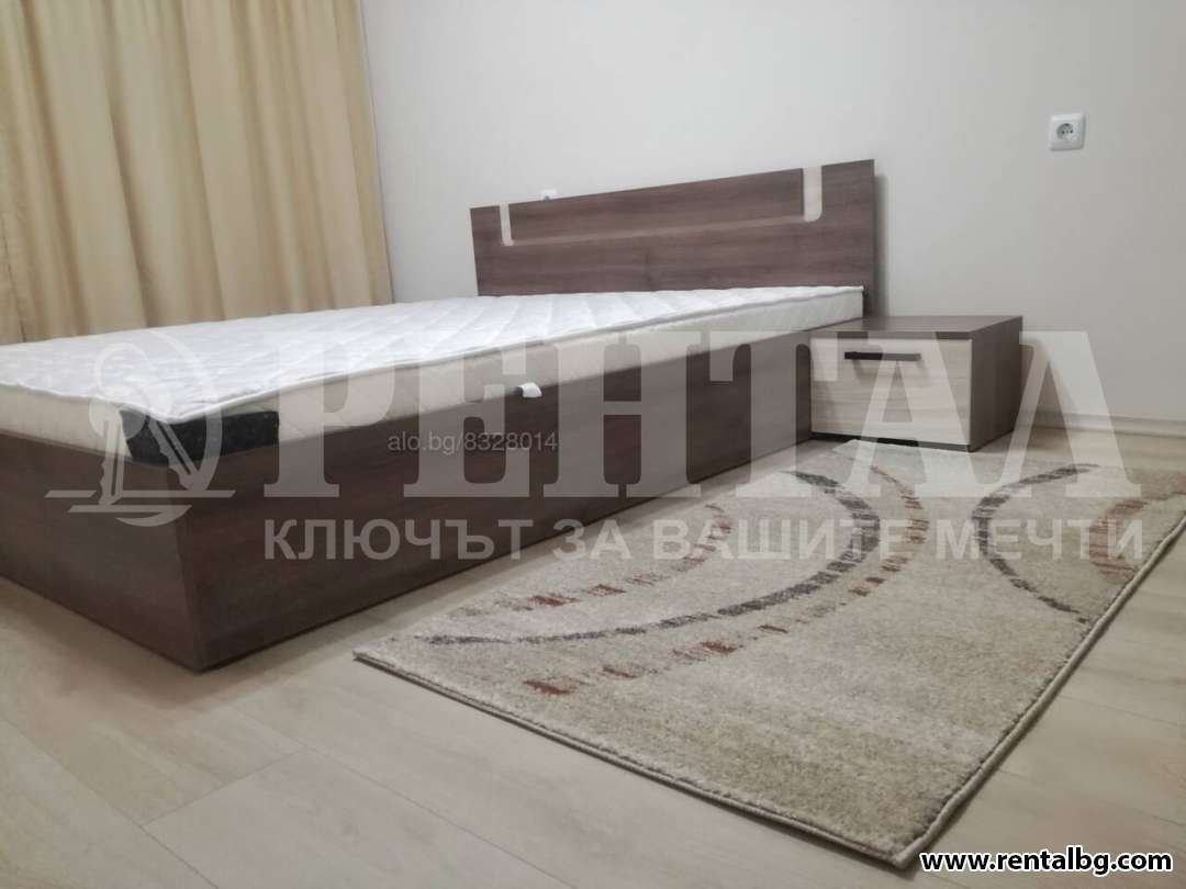 Предлагаме под наем апартамент, състоящ се от хол с кухненски бокс, спалня, баня и тоалетна, антре и тераса. Изложение - изцяло юг. Апартаментът и обзавеждането са нови и се отдават за първи наематели. Холът включва и кухненски бокс и е обзаведен с чисто нови електроуреди - вградени печка, фурна и аспиратор, пералня, хладилник, микровълнова, климатик - Daikin, Тeлевизор, има голям и удобен ъглов диван, с трапезна маса към него. Спалнята е уютно обзаведена. Сградата разполага с два асансьора. В близост до комплекса са магазини Лекси, Триумф и Lidl, Хирургиите на Пещерско шосе, като на 5 минути пеша е Гребната база, а на 10 минути пеша е Мол Пловдив. ОФЕРТА 263414
