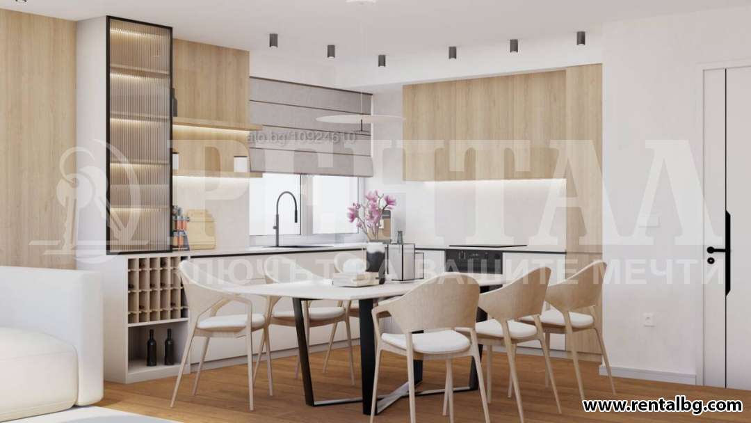 - Разпредерение: дневна с трапезария и кухненски бокс, голяма панорамна тераса с изглед към Родопите, детска спалня с баня и тоалетна, родителска спалня с баня и тоалетна, трета спалня или кабинет, килер, тераса към спалните, входно антре.