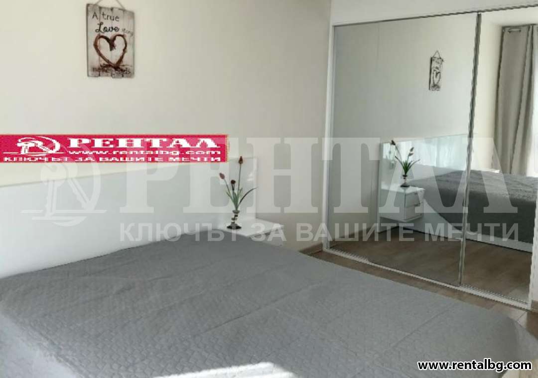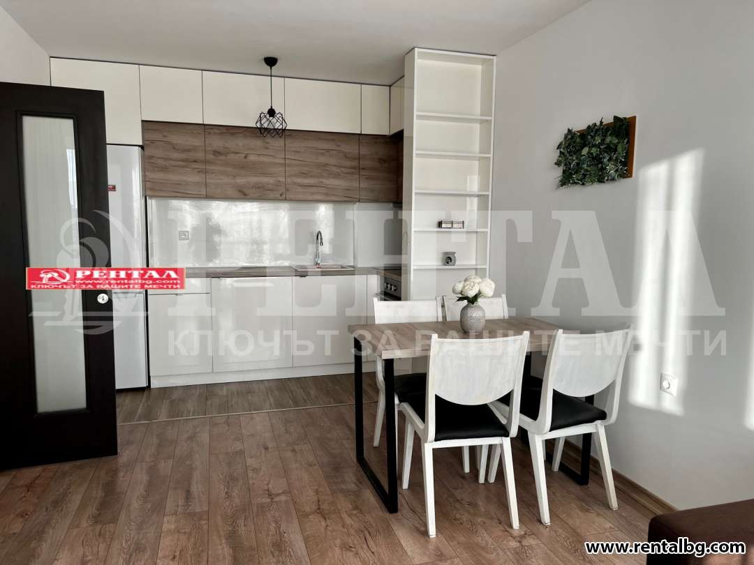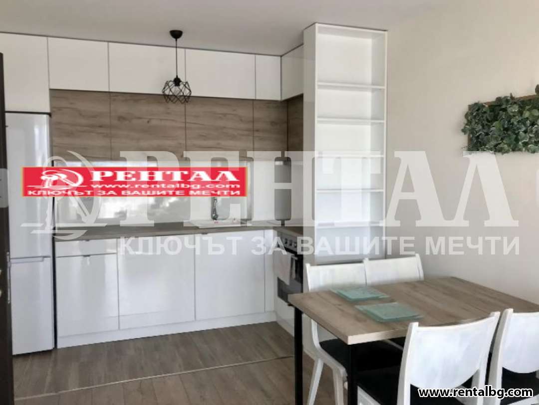 Предлагаме под наем двустаен апартамент в новопостроена луксозна сграда. Всичко е ново и много стилно завършено, пространството е функционално оформено. Мястото е в непосредствена близост до МОЛ Пловдив, до Хирургийте и до Пълмед. Жилището е изцяло с южно изложение с френски прозорци с изглед към парк. Към сградата има и вътрешен двор. Апартамента има една спалня, всекидневна с кухненски бокс, антре, баня с тоалетна и тераса. Предлага се напълно обзаведен с поръчкови мебели, с климатици и с електроуреди. ОФЕРТА 263885