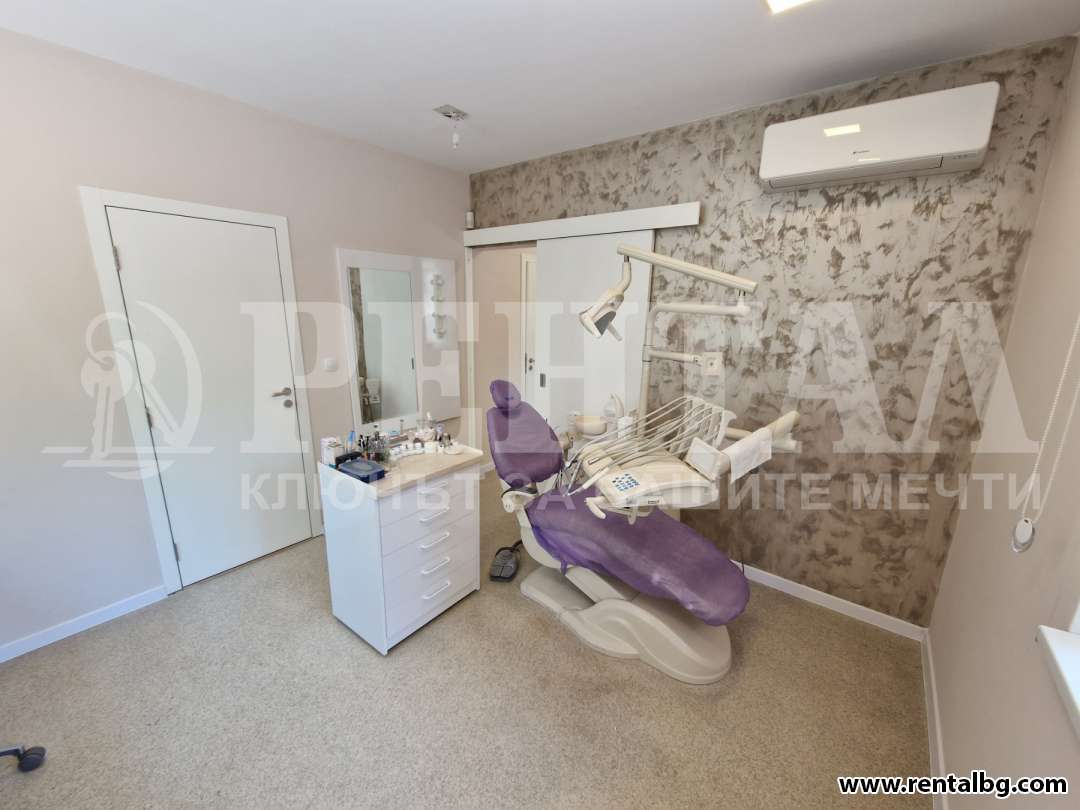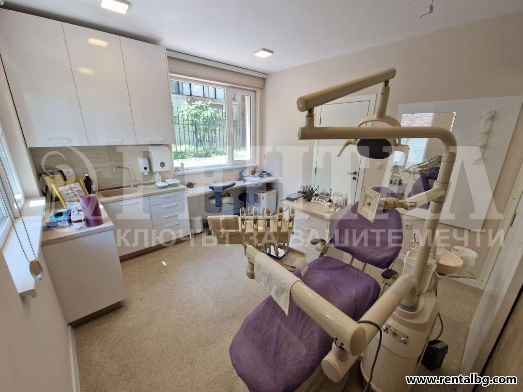 оферта 232501 ЕКСКЛУЗИВНО от Агенция Рентал, предлагаме под наем оборудван стоматологичен кабинет с площ 55 кв.м. и с възможност за създаване на лекарски кабинет до него. Кабинетите са с два различни входа. Кабинетът се до Медицинския Университет на много комуниникативно място, изцяло оборудван, окабелен, разполагащ 3 климатик, 2 тоалетни и чакалня. Агенцията разполага с ключ, за вашето удобство. За повече информация и огледи, моля свържете се с нас!