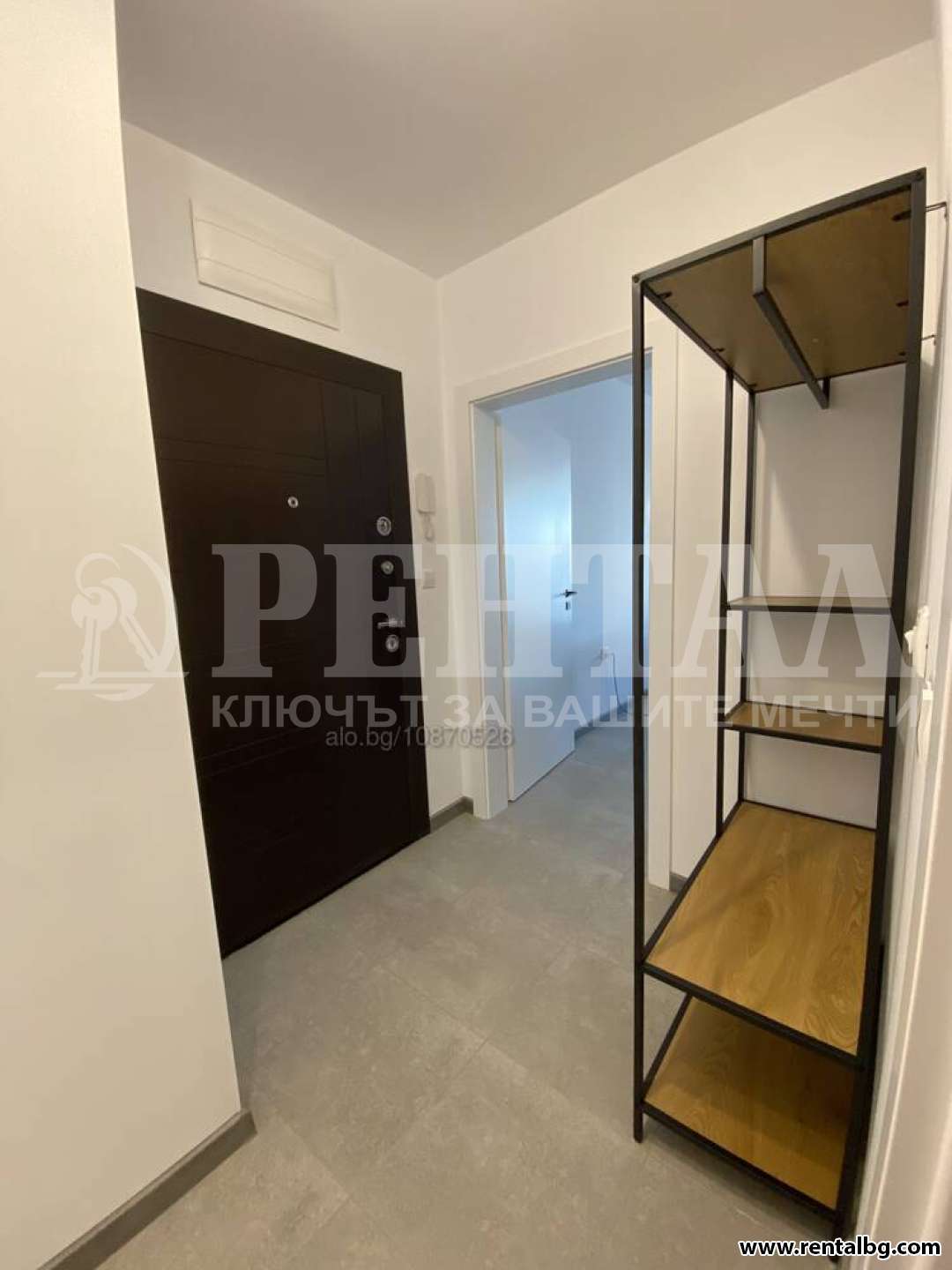 Разпределение: входно антре, хол с кухненски бокс, спалня, баня с тоалетна, две тераси.